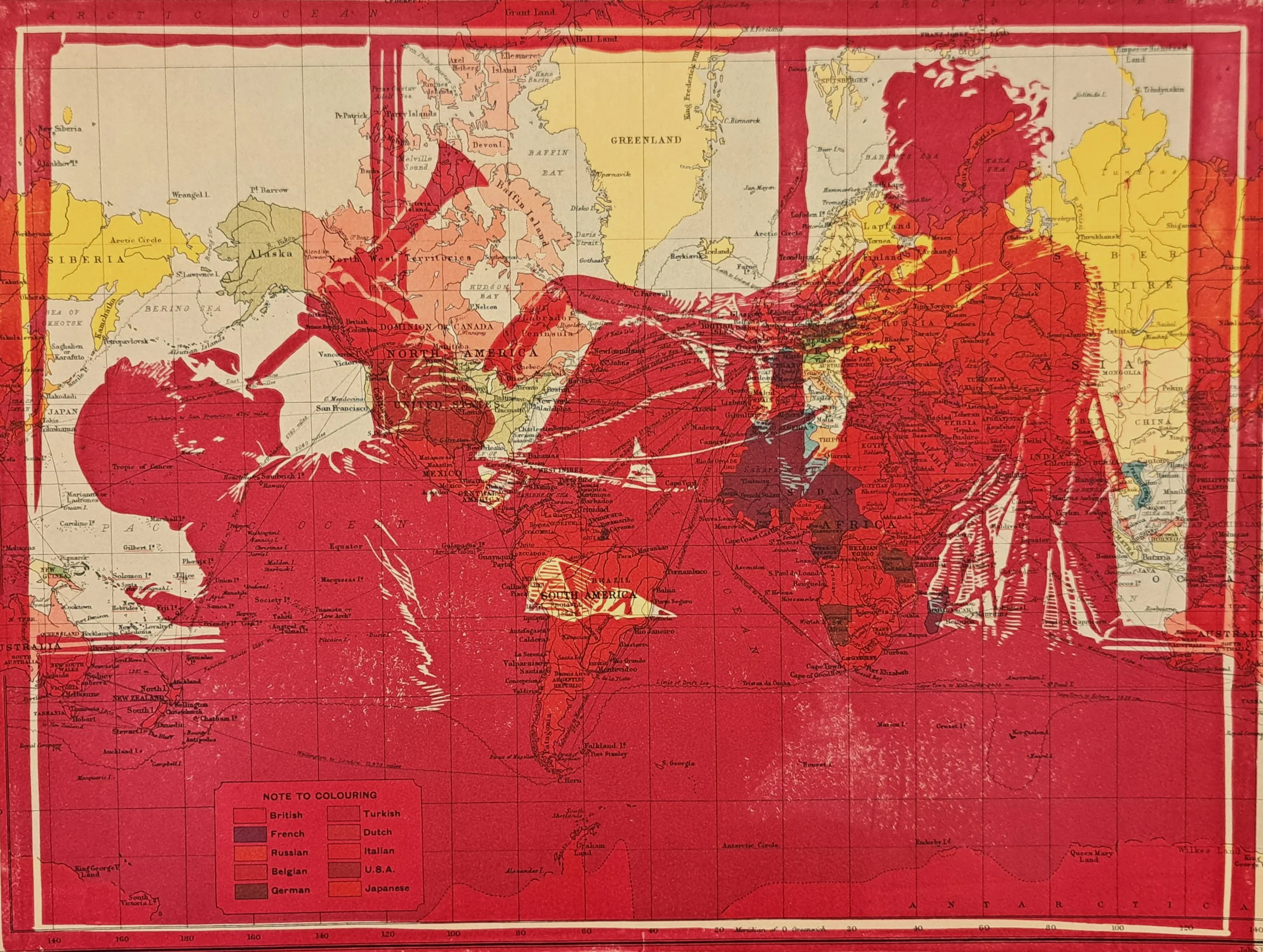 Voici des œuvres réalisées au moyen de techniques mixtes sur divers supports : des anciennes cartes géographiques imprimées, des papiers à motif imprimés, d’autres d’origine asiatique faits à la main ou en presse, des cartes à gratter, des linogravures et des collages. Dans le descriptif de chaque oeuvre, ce qui n’est pas indiqué comme “vendu” est disponible - veuillez me contacter par courriel si vous souhaitez en savoir davantage.